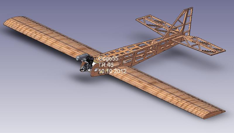 Хоризонталния стабилизатор няма да мога да използвам от оригинала стария защото имам чувството че ако стисна балсовите летвички ще потече рицин толкова много се е напил и той. Когато му свалих фолиото с цел да го преоблека видях че и тои както и първата една трета от тялото е ужасно просмукан с рицин. Докато чакам да ми доиде музата да нарежа няколко балсови летвички за хоризонтален стабилизатор довърших горе доле целия чертеж на модела в солид. Не съм му придавал фотоизглед защото не виждам смисъл. Чудя се дали да не пусна и още едно трето поред малко по дълго крило с планерджийски профил, с цел да се получи един вид мотопланер, но може би това ще е третото крило което ще правя за този модел след второто което ще е със симетричен профил.