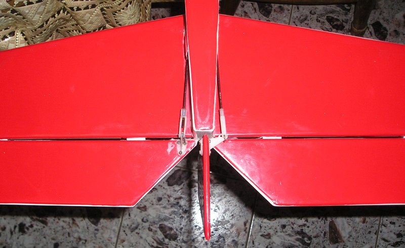 Първо нивелирам тялото да е строго хоризонтално по двете плоскости крен и тангаж с нивелир, после слагам хоризонталния стабилизатор-това е важно при този модел винаги първо да се слепи хоризонтален стабилизатор и чак след това вертикален. Ако първо се слепи вертикалния стабилизатор после няма как да се мушне в отвора на тялото хоризонталния стабилизатор!!! Хоризонталния също се нивелира както тялото да е хоризонтален в двете плоскости и да е на 90градуса спрямо тялото, също и с рулетка да се мерне разстоянието от носа на модела до края на хор стаб да е еднакво от двете страни лява и дясна. След около 30 мин когато дръпне лепилото на хоризонталния стабилизатор се лепва и вертикалния. При вертикалния основно се гледа да бъде строго по осевата линия на тялото за да не завива модела и да няма нужда от голямо тримиране. Също и да бъде строго вертикален-това го правя с два триъгълника поставени на хоризонталния стабилизатор за хоризонтална основа и допряни към вертикалния така имаме точно 90 градуса между хоризонтален стабилизатор и вертикален стабилизатор.