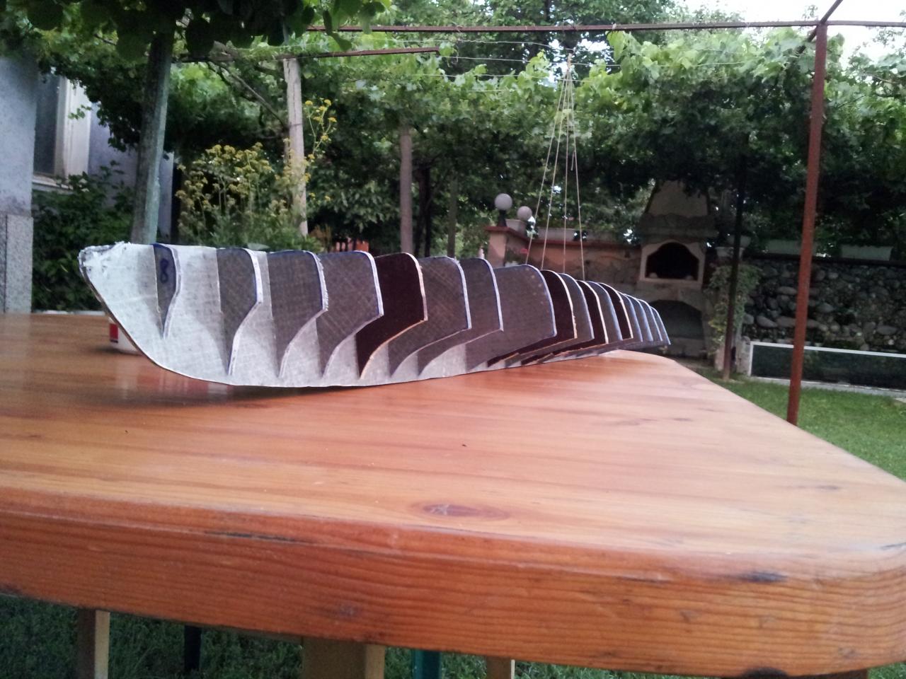 Утре или вдругиден, когато е сигурно че лепилото е стегнало ще започна по-грубото изрязване и оформяне. След това шлайфане, китване, смола и плат. Ще се опитам до пускам снимки според напредването.