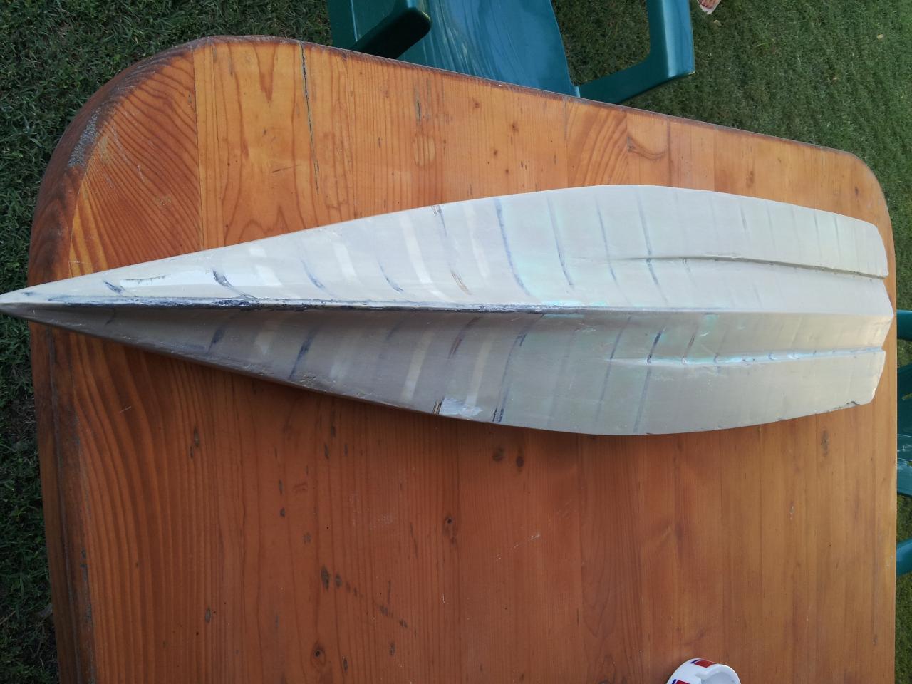 Иначе се получава солидно, модела е доста по-корав с кита отгоре и вече не се притеснявам, че ще ми потънат пръстите във фибрана, щом го подхвана...А и вече има някаква повърхност и все повече заприличва на лодка.