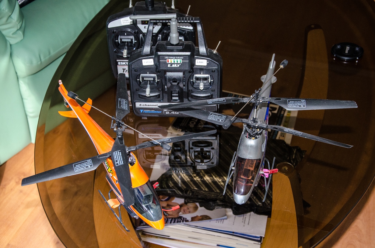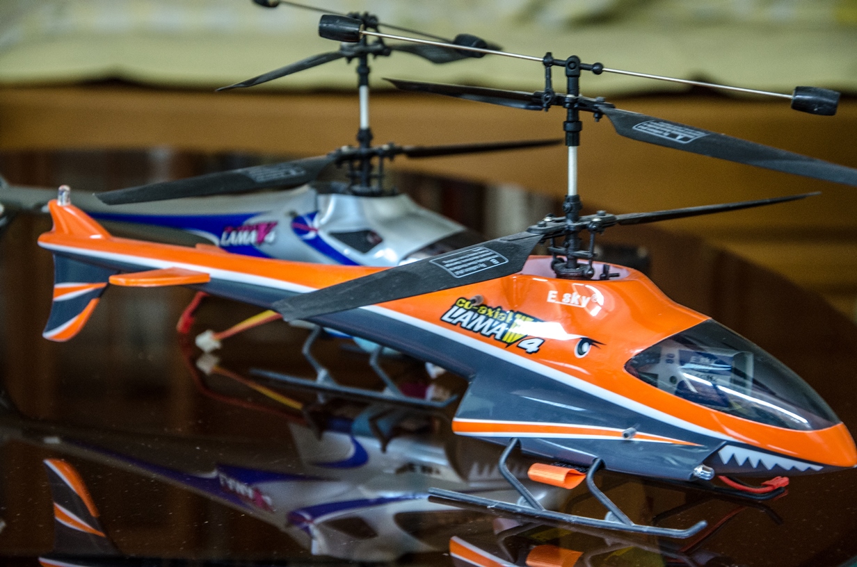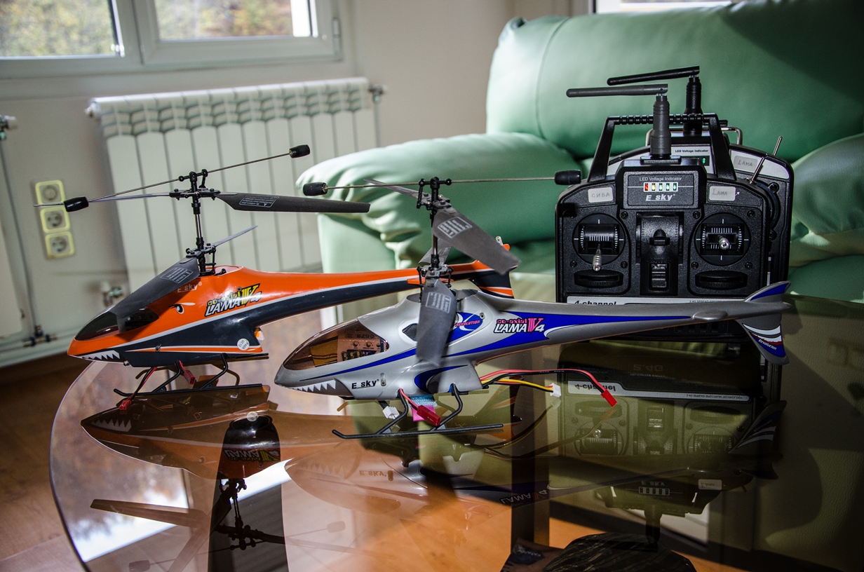 Продавам 2 бр. коаксиални хелита Esky Lama V4. На 4-5 полета. В комплект с 2.4GHz апаратура, 2S LiPo батерия, зарядно и резервни лопати. RTF.