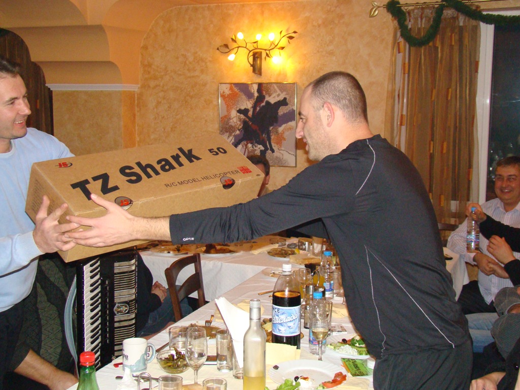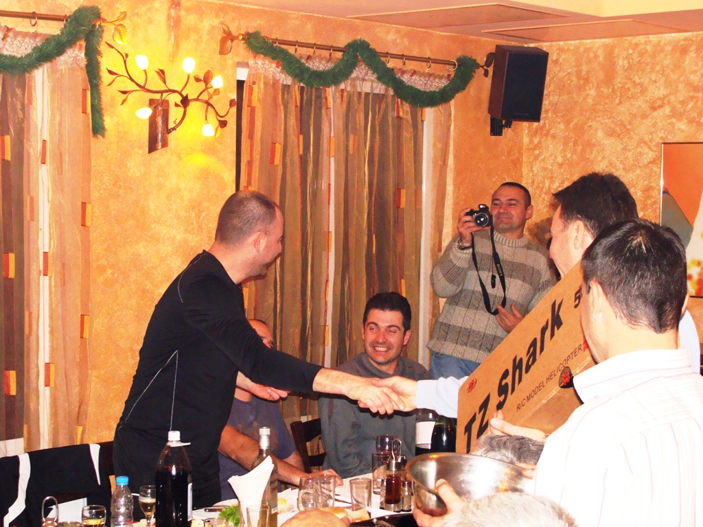 Явор Йотов, съвместно с Христо Христов, осигуриха подаръци, които се раздадоха под формата на томбола. Явор осигури 7 хеликоптера TZ50, a Христо добави още няколко малки хеликоптерчета и други дреболии. Аз също добавих един HK450Pro и разни дреболии. Основното тегло на подаръците обаче отнесе Явор Йотов, за което сърдечно му благодарим.