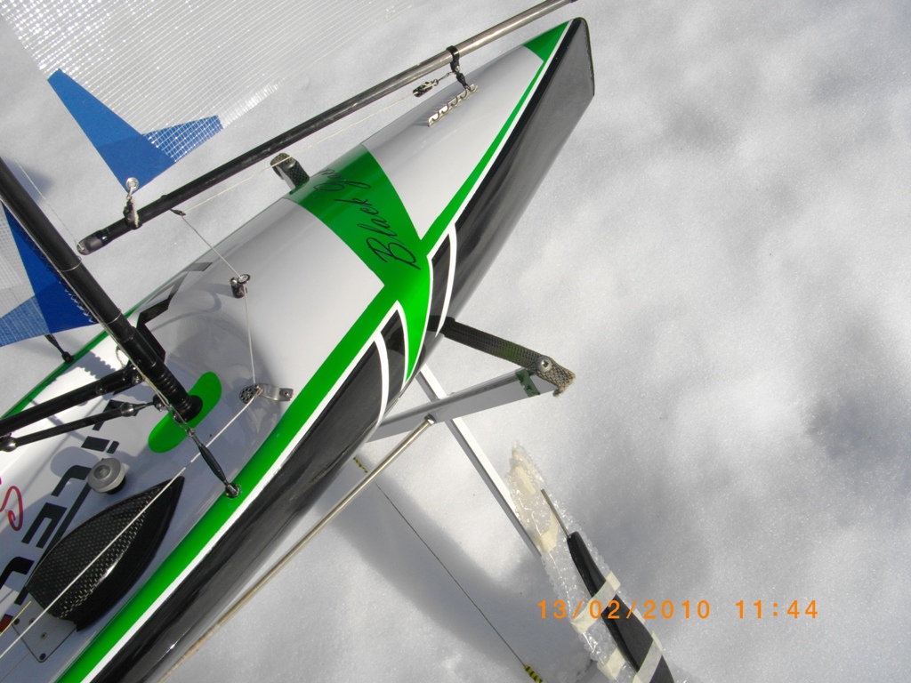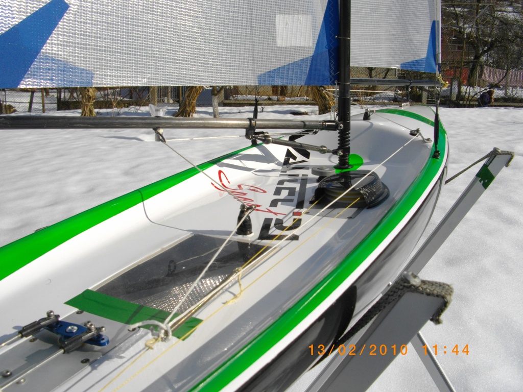 Карбонови гикове, мачта, рул и кил, баласта е хромиран.