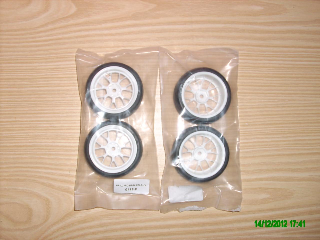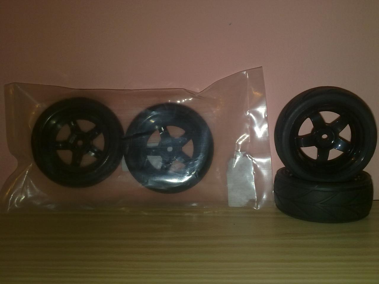 Продавам 3 комплекта (4 гуми в комплект) нови гуми с джанти с вложки, за 1/10 on road модели.