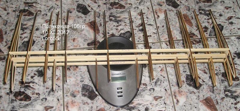 -Дължина центроплан 120см и две полукрила по 60см всяко –общо разпереност 240см.