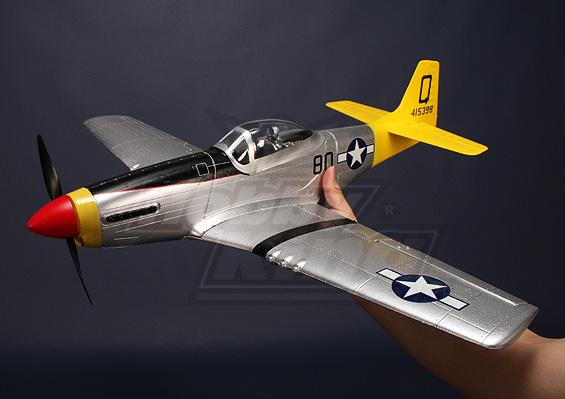 един мустанг Hobby King Mini P-51D Mustang Parkflyer Plug-n-Fly дължина 750мм, ширина 610мм, в комплекта ESC: 10A brushless,Servos: 9g x 2 ,Brushless motor , нужна е батерия 11.1V 3S 800~1000mah lipo battery, приемник и предавател , цена 119лв
