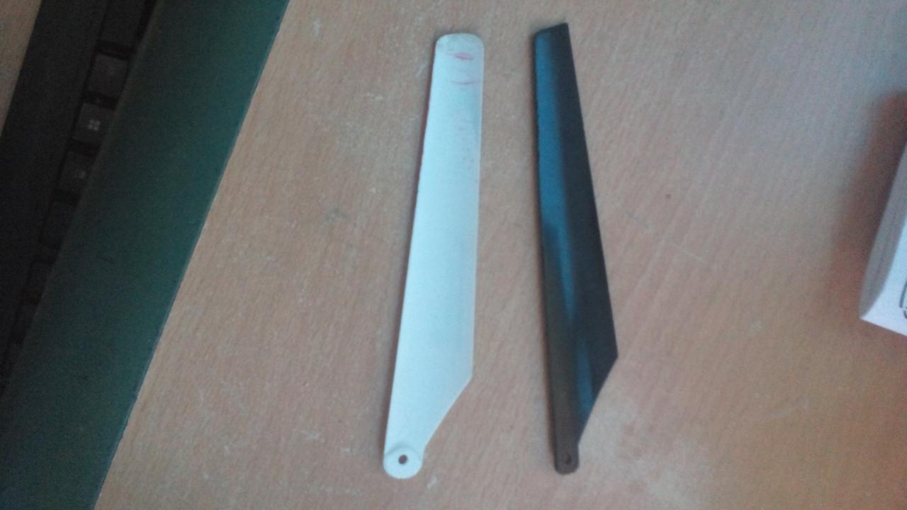 . Тогава не можах да намеря перки като оригиналните, но купих малко по-малки. За жалост се оказаха слаби за да вдигнат хеликоптера. Ако някой може да ми помогне да намеря перки като оригиналните (4 перки) ще съм му много благодарен. Ще дам снимки на оригиналната перка (тя е с бяло и червено) и на тази която купих (чисто черна).