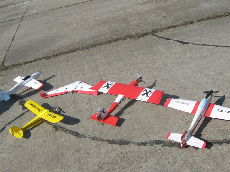Днес успяхме да пуснем модела. Като цяло очакванията ми се потвърдиха. Модела лети чудесно, поради липсата на дросел мотора беше на максимални обороти през цялото време (15-16 мин полет с един резервоар). Опитах се да го натисна до колкото можах, завои и лупинги с минимален радиус, пикиране отвисоко с рязко набиране на височина и т.н. с идеята ако нещо ще се разпада, да се разпада още на първия полет. За моя радост модела издържа всички претоварвания без никакви проблеми. Мощността на мотора беше достатъчна за вертикално издигане на значителна височина, но не неограничено. По нататък ще помисля за някакъв контрол на оборотите или за друг мотор с дросел. КМД-то беше оборудвано с витло 230х150 (9х5) което на земята даде 10730 оборота в минута. Отначало му бях сложил 200х100, но после реших че ще му е много леко. Определно по-голямото витло пасва на мотора за този модел по-добре. След спирането на мотора модела си планира доста добре и кацна без никакви проблеми. Определно му предстоят още полети и тестове. Радващо за мен е това, че модела не искаше почти ниакакво тримоване (няколко щраквания на хоризонталното кормило нагоре) няма тенденция към набор на височина или забиване на нос, не тегли на никъде, а всичко е на 0-0-0. Даже няма страничен ъгъл на мотора. Следващите полети ще покажат повече надявам се.