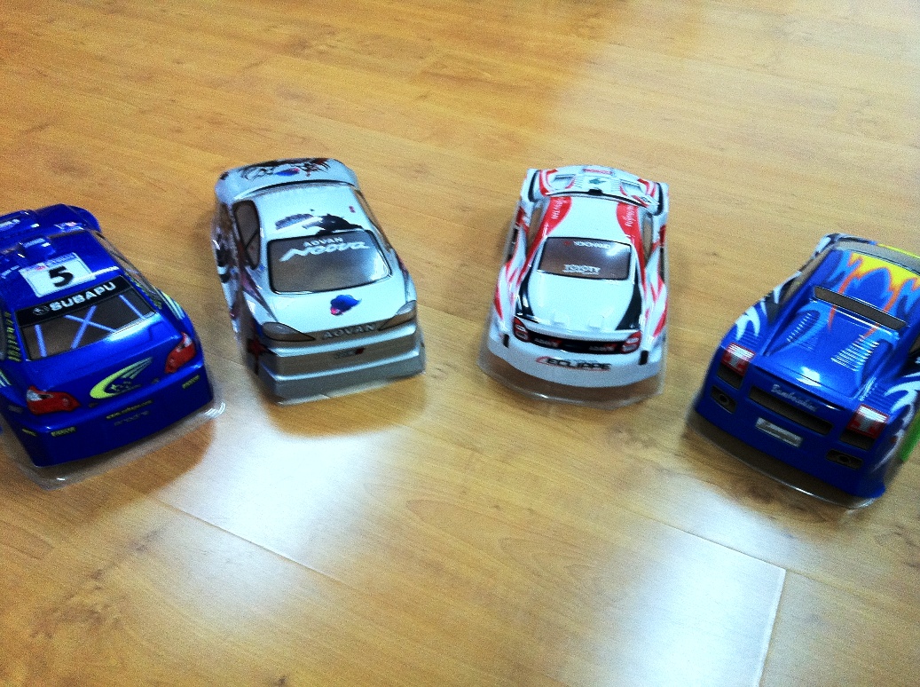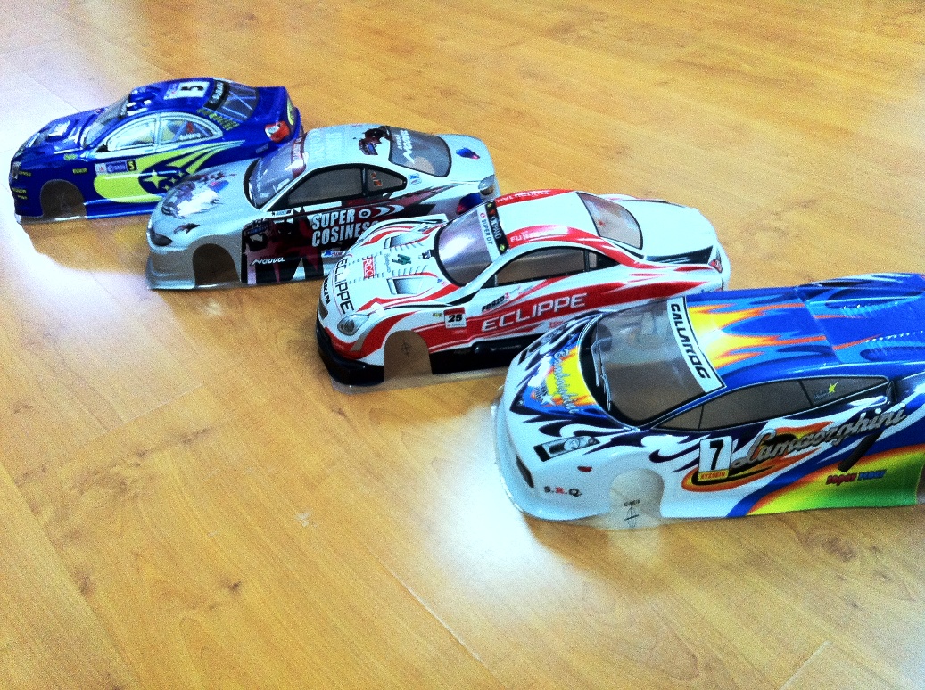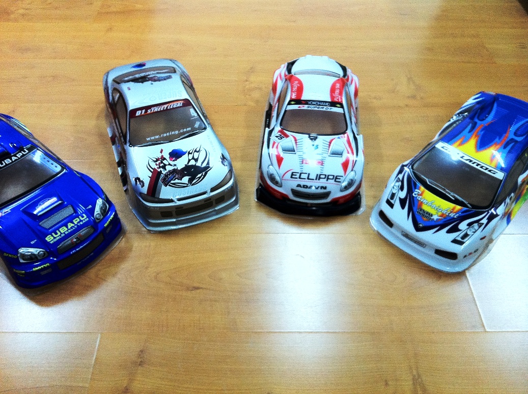 Продавам 4 бр. чисто нови висококачествени купета за автомодели 1/10. Ширината им е 200мм, а междуосието - 260мм. Всяко от купетата съдържа комплект с допълнителни детайли: фарове, спойлери, огледала и др.